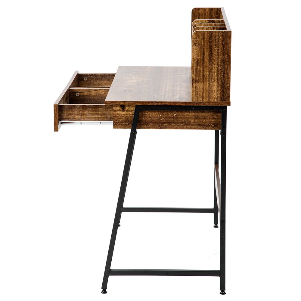 3.【大容量二つ引き出し付き】A4サイズも収納可能。手元に置いておきたい書類や筆記用具などの収納に便利です。スライドレールが付いているので、開閉はスムーズでストレスがありません。【飾り物と小物を収納できる天板ラック収納付き】テーブル上部の収納スペース。本や小物などお気に入りのアイテムを豊富に収納可能です。4.【一人暮らしにも、ビジネスにも】ゆったり快適に使えるから、ご自宅でも、オフィスでも大活躍!
