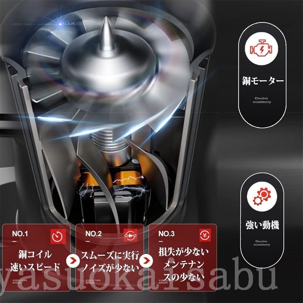大容量バッテリーがオプションで、本体に装着可能。 ワイヤレスリチウムバッテリーは長持ちし、バッテリー寿命は従来のバッテリーより30%長くなります。 作りが便利で、長く使えます。 効率的な放熱、回転放熱技術、多孔質放熱により、モーターを焼損から保護します。低温環境下でも使用可能です。