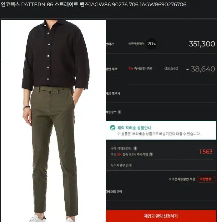 インコテックス パターン 86 ストレート コットン チノ パンツ