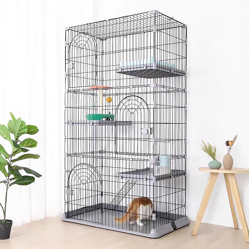 【多頭飼い可能】すでに猫を飼っている飼い主が新たに猫を迎え入れ、多頭飼いを始めるための3段または4段タイプの猫ゲージです。広々としたスペースで子猫たちが自由に上下運動でき、2匹や3匹の子猫を飼っていても窮屈さを感じません。各段には棚板が1枚付き、猫のお気に入りの物を置いて、子猫が楽しく遊べる環境を提供します。