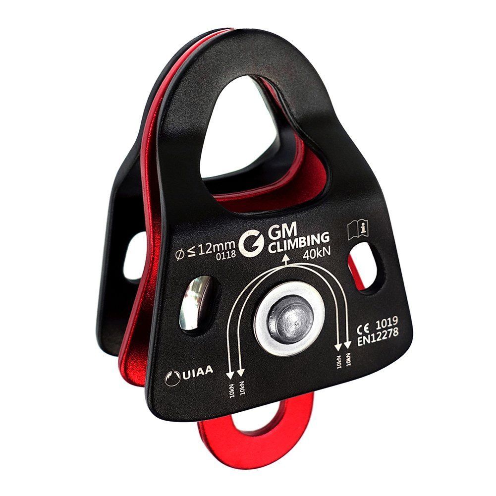 GM CLIMBING CE UIAA認証 40kN マイクロダブルプーリー ボールベアリング内蔵 5:1 倍力システム プーリーシステム キットセット クライミング リギング レスキュー アーボリスト用 12mmまでロープ適応