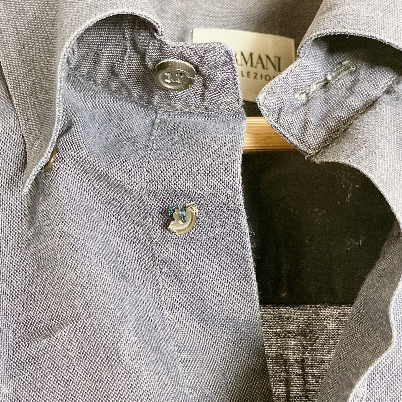 襟近くボタンの一部欠けあり。また、襟元や袖口中心に色褪せ箇所もあり。