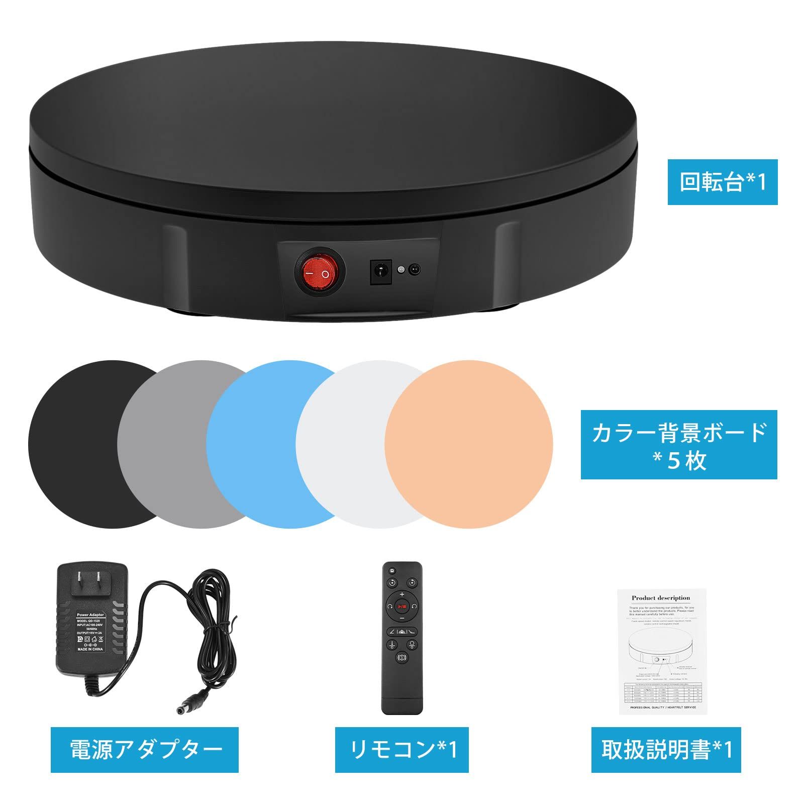 360度電動回転台 ターンテーブル 30 cm 回転台電動 ターンテーブル電動 ディスプレイスタンド 耐荷重100 kg 直径30 360°回転 100-110 v電圧 リモコンが付き 操作便利 スピード 方向 角度が調整 低騒音 撮影