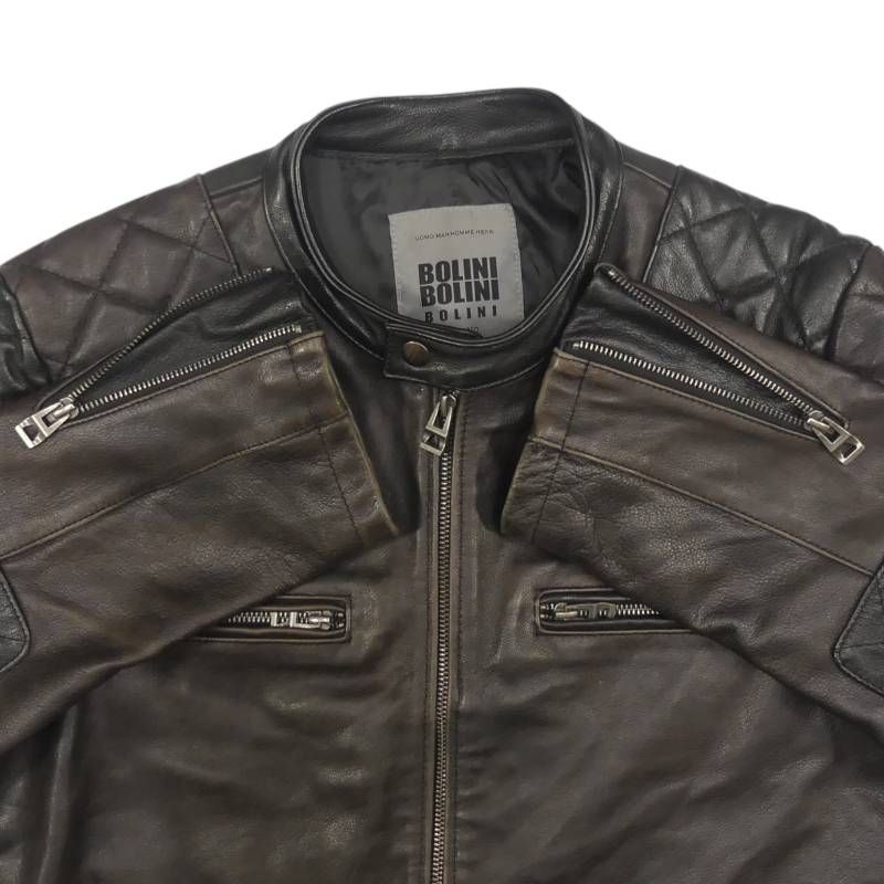 Bolini ボリーニ ライダースジャケット L 本革 シングル メンズ 50 レザー 黒 パテッド バイク 牛革 キルティング 立ち襟 レザーライダースジャケット_サイズL一覧 SEULB屋着古 X 8112