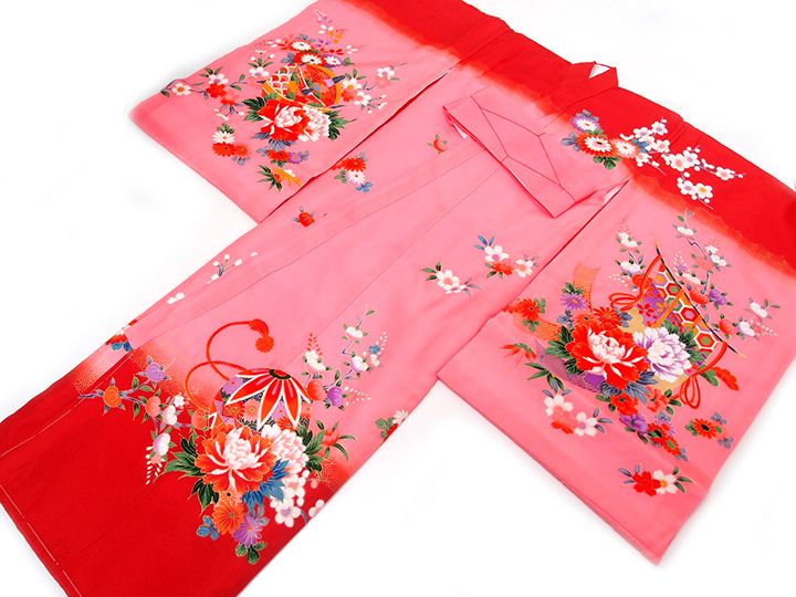 赤×鮮やかなピンクの地はなんといっても女の子らしく、