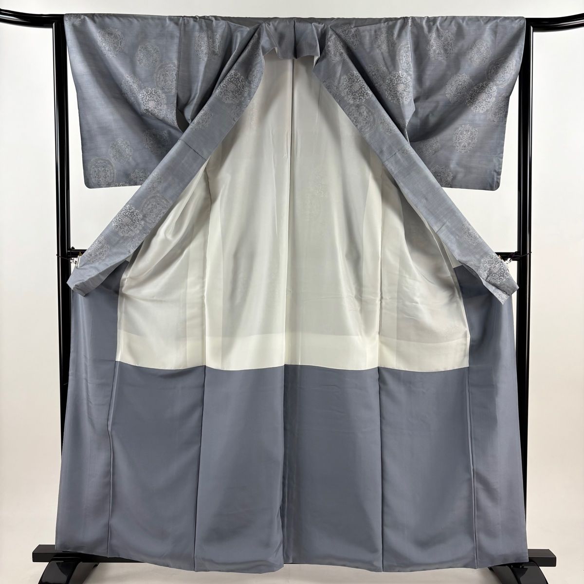 紬 身丈162 cm 裄丈64.5 M 袷 華文 青灰色 正絹 秀品