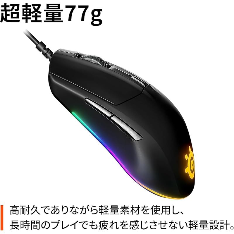 商品名:SteelSeries USB ゲーミングマウス 有線 軽量 低遅延 メカニカルスイッチ 3ゾーンRGBイルミネーション Rival 3 62513
