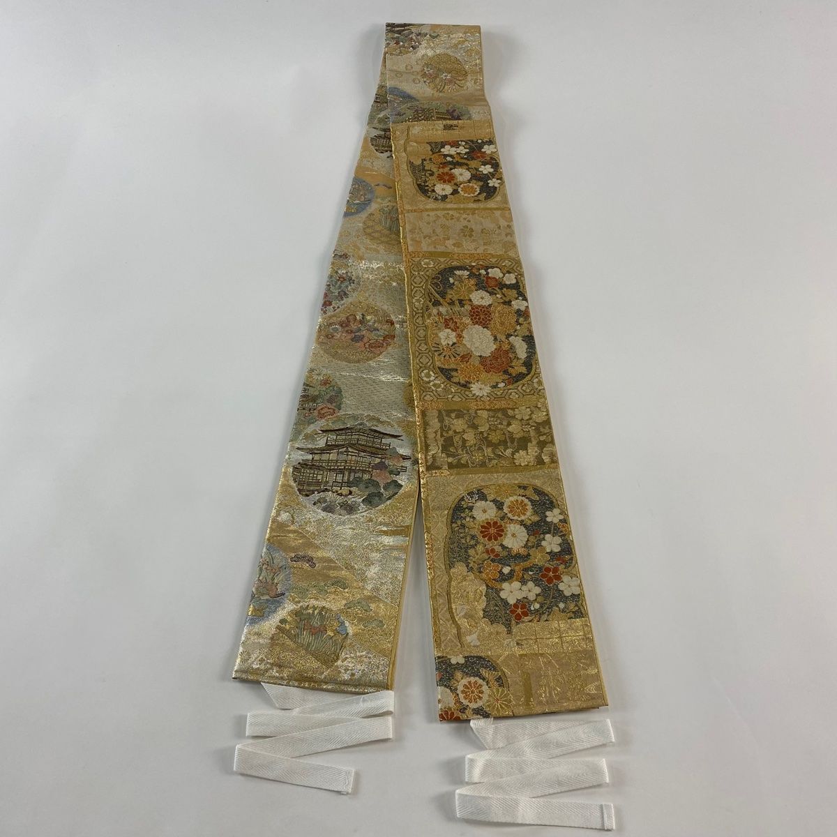 付け帯 秀品 作り帯 花車 草花 金糸 箔 金色 正絹