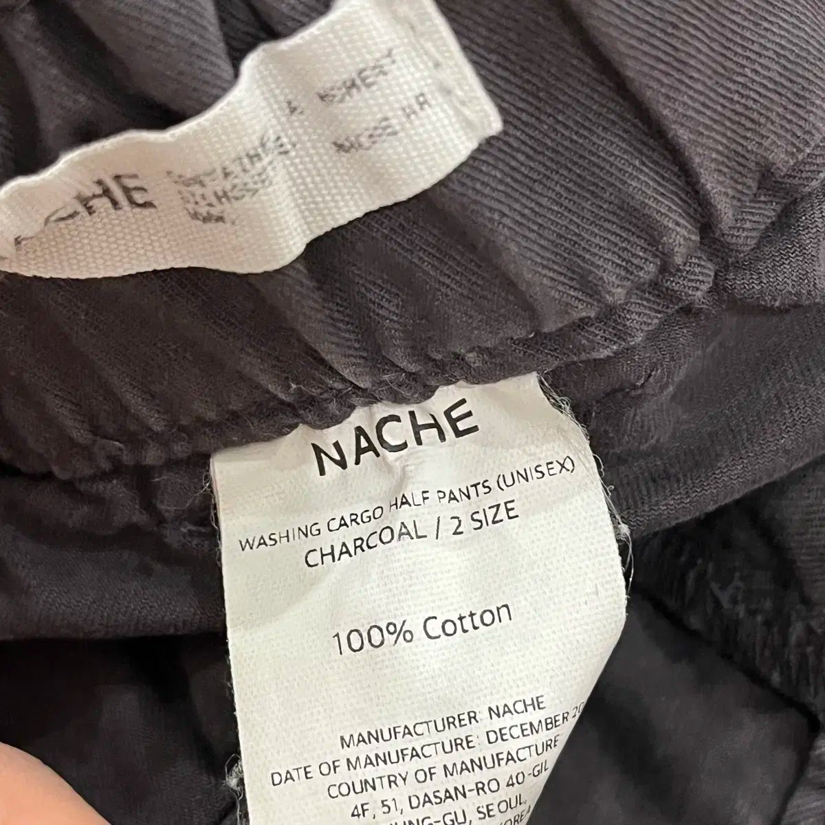 NACHE ナチェ ウォッシュ カーゴ ハーフ パンツ チャコール