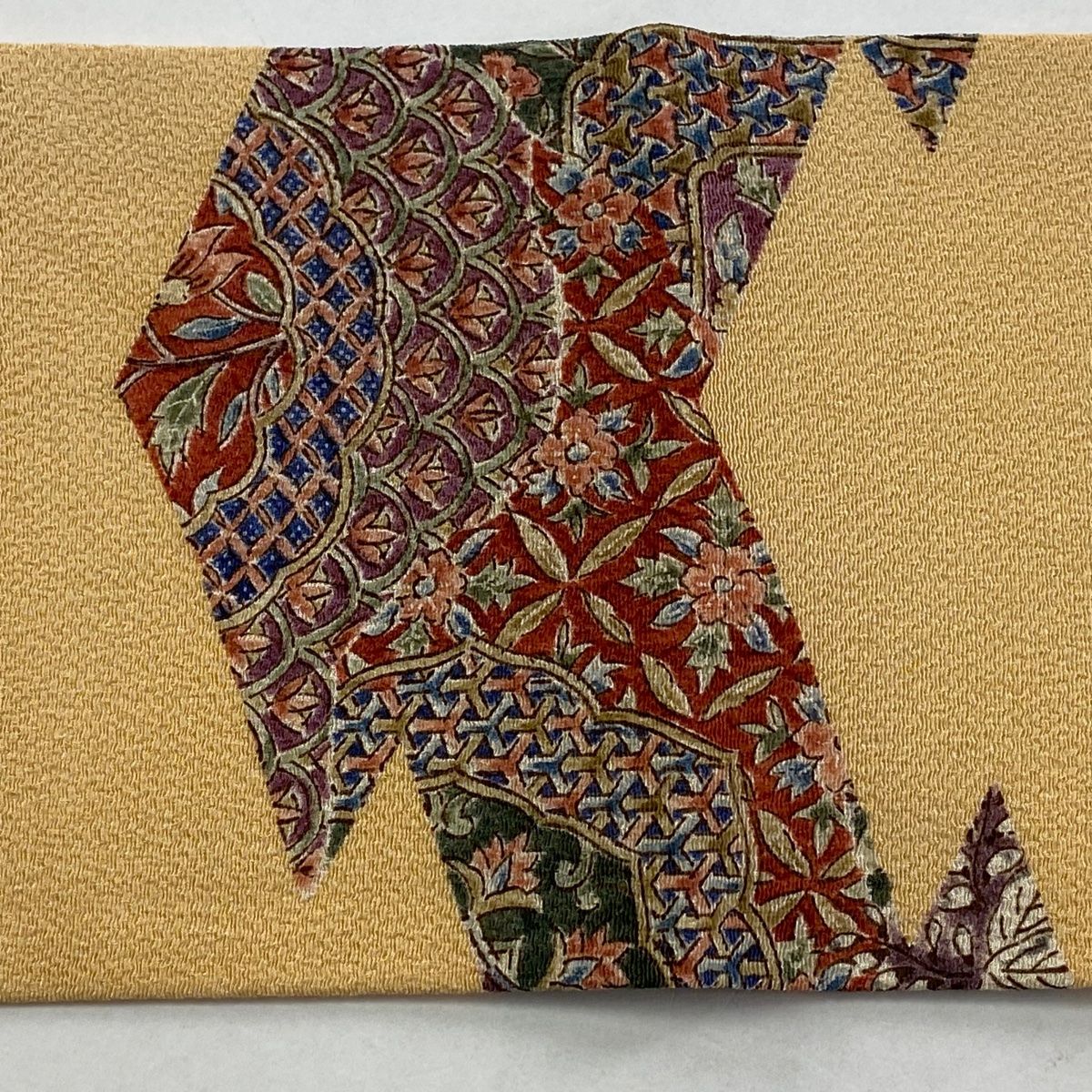 名古屋帯 秀品 二代目 更甚 落款 更紗 毘沙門亀甲 縮緬 オレンジ 正絹