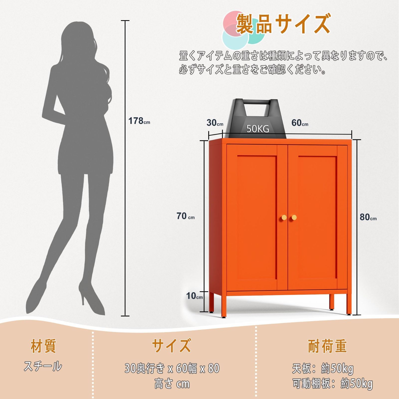 【製品仕様】材質:金属。 重量:12.9kg。 収納ラック耐荷重:約55kg。 製品サイズ:高さ80×幅60×奥行30cm。 キャビネットは冷間圧延固体鋼で作られ、粉体塗装が施されているため、優れた耐久性と長寿命を実現します。 頑丈な構造により、キャビネットは最大 130kg の荷重に耐えることができます。 ※詳細は画像をご覧ください。