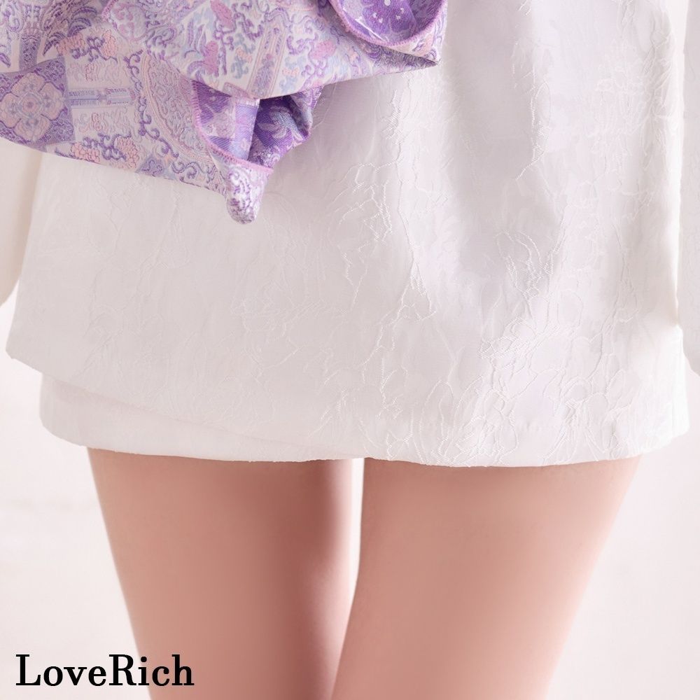 LoveRich ラブリッチ ライン 2点セット 和モダン ジャガード オフショル ミニ 豪華 帯 リボン 花魁 着物 ドレス コスプレ イベント 1533