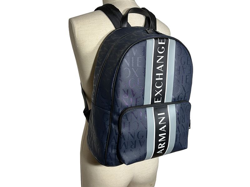 アルマーニ エクスチェンジ ARMANI 952394 CC 831 69536 NAVY MIRAGE GREY BACKPACK ロゴライン入り ネイビー系 ロゴ柄 コーティングナイロン バックパック リュックサック