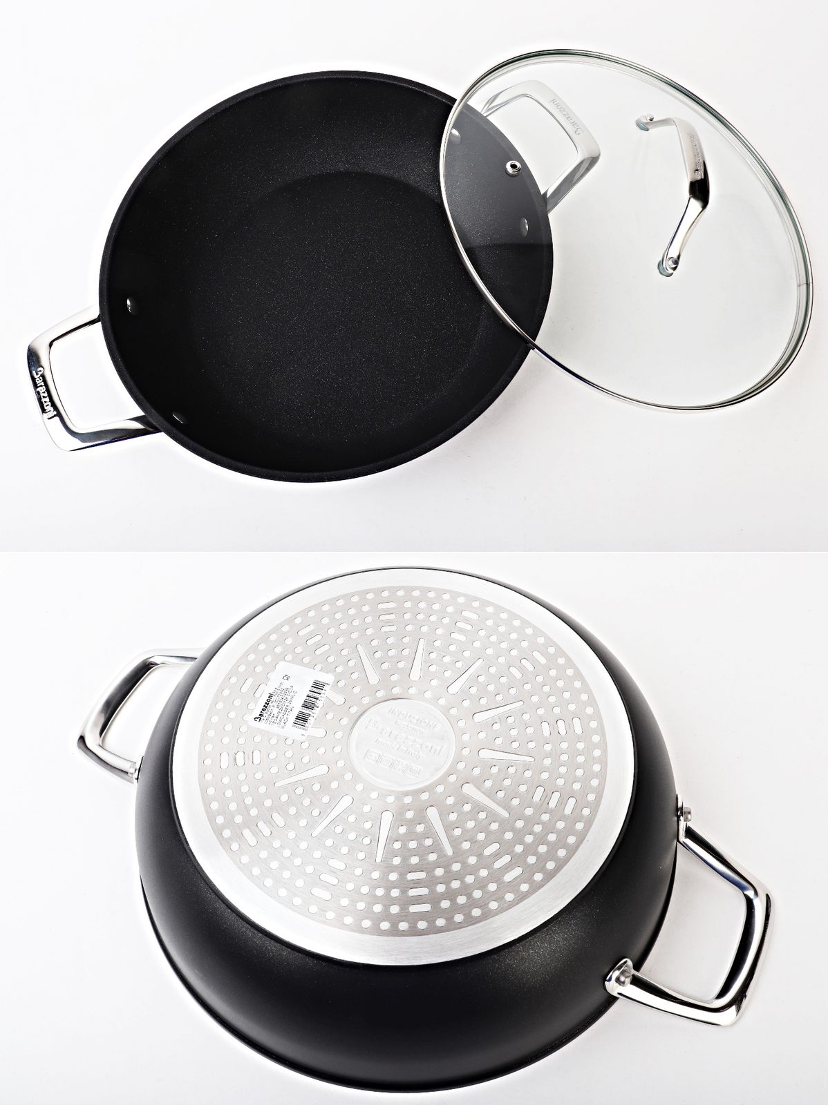 Barazzoni 鍋5種類セット BLACK TITAN BT-S 5 IH 両手鍋 片手鍋 蓋 食洗機 ガス オーブン ゾーニ 展示 R 2509-126