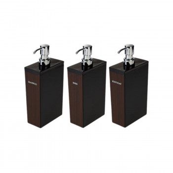 WOODY ウッディ ディスペンサー詰め替えボトル3本セット シャンプー リンス ボディソープ 長角型 700 ml 黒×ウォルナット