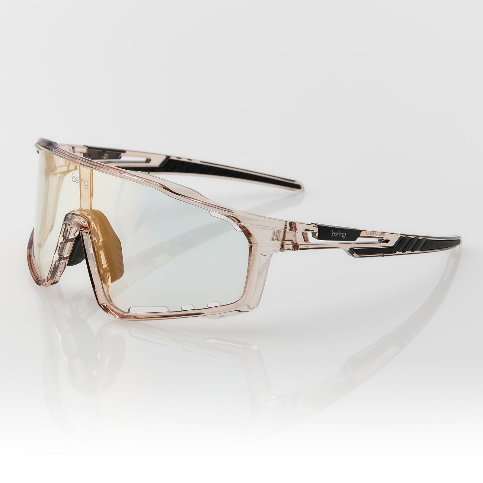 being スポーツサングラス 紫外線調光サングラス 色が変わる 昼夜兼用 クリアブラウンフレーム ミラーゴールドレンズ 紫外線カット UV 400レンズ ロードバイク 自転車 サイクリング 通勤 ランニング 野球 メンズ レディース 男女兼用