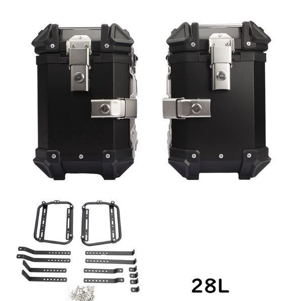 サイドボックス バイク用サイドケース 左右セット 片側28 L サ イドキャリア付き ルミ製 パニア ケース 鍵付き 取付ネジ付き 防水 簡単脱着 黒YR