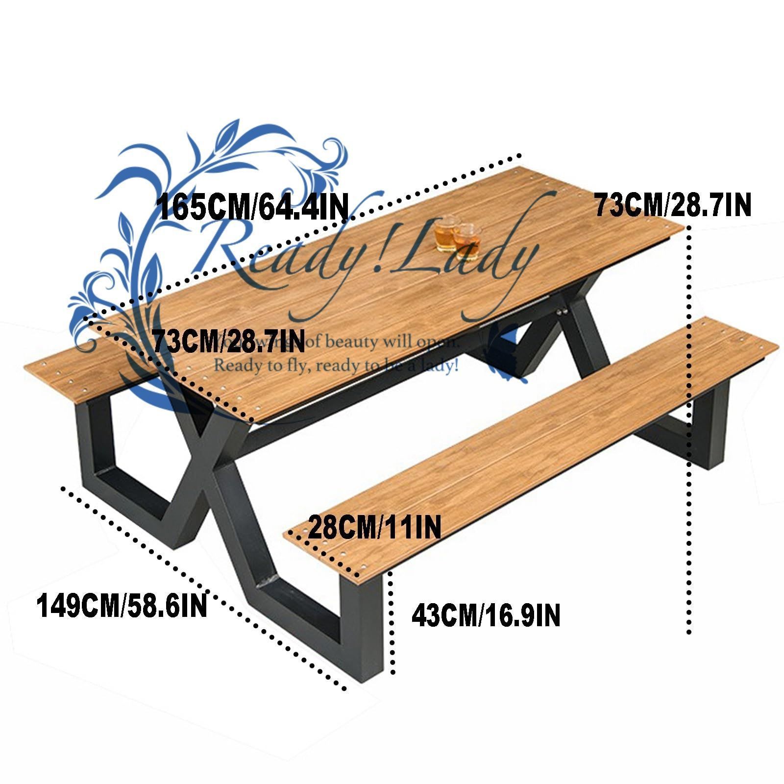 このテーブルトップとベンチは高品質のプラスチック木材で作られており、耐久性があり丈夫なので、屋外での使用に最適です。 この素材は色あせ、剥がれ、ひび割れが起こりにくく、汚れがつきにくく、お手入れが簡単です。 頑丈なフレームは全天候型仕上げのアルミニウム合金フレームを備えています。 それは何年も続く可能性があります。 家族の団欒や楽しいレジャータイムに最適なサイズです。