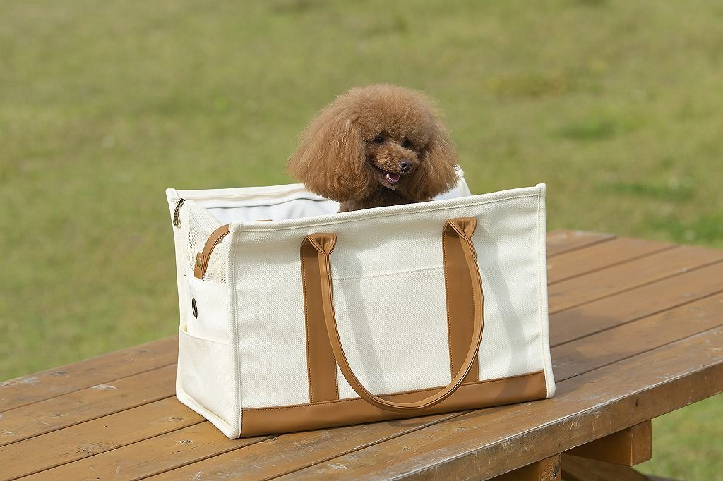 アイリスオーヤマ ペットキャリー キャンバストートキャリー 幅約45×奥行約23×高さ約30 cm メッシュ生地 飛び出し防止リード 2 way トートバッグ Lサイズ アイボリー P-CT 450 IRIS OHYAMA