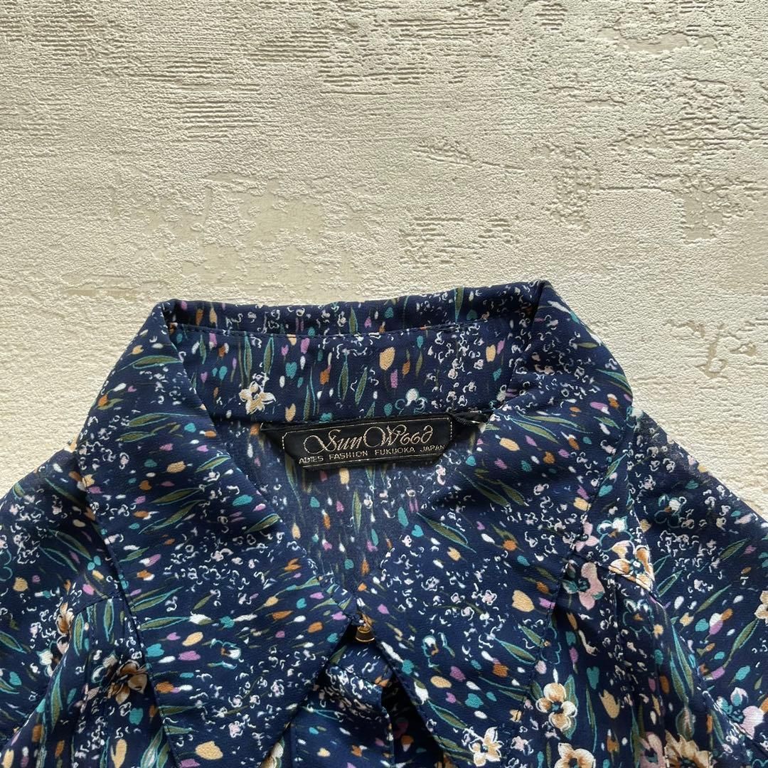 昭和レトロ花柄長袖ロングワンピースセットアップ透け素材ネイビーaf