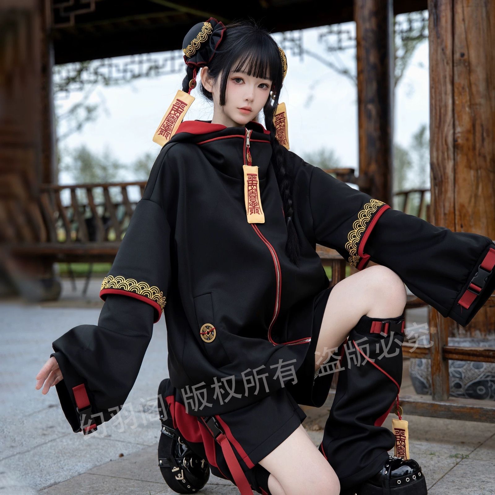 ブルー キョンシー コスプレ チャイナ風 セットアップ 上下セット ジャージ風 ゴシック 原宿系 衣装 仮装 イベント ダンス 10代 20代 韓国ファッション コンカフェ 渋谷 クラブ 原宿