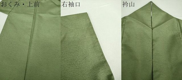 状態は接写画像のようにおくみ、上前、右袖口に薄いシミ、衿山に若干の薄い汚れがございますが