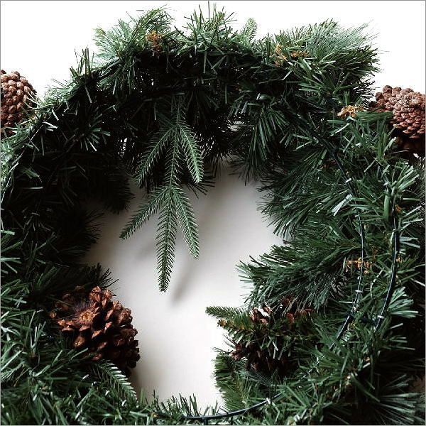 リース おしゃれ 玄関 大きい 55 cm LED イルミネーション リビング 松ぼっくり 北欧 グリーン もみの木とコーンのLEDリース