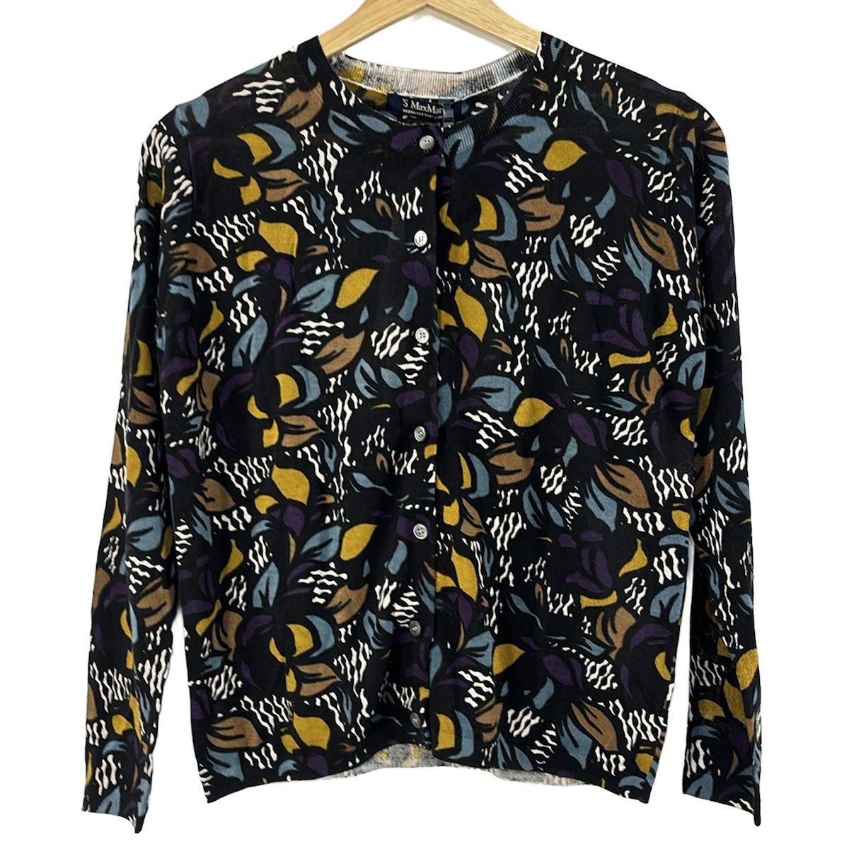 S Max Mara マックスマーラ カーディガン サイズXS レディース - 黒×白×マルチ 長袖