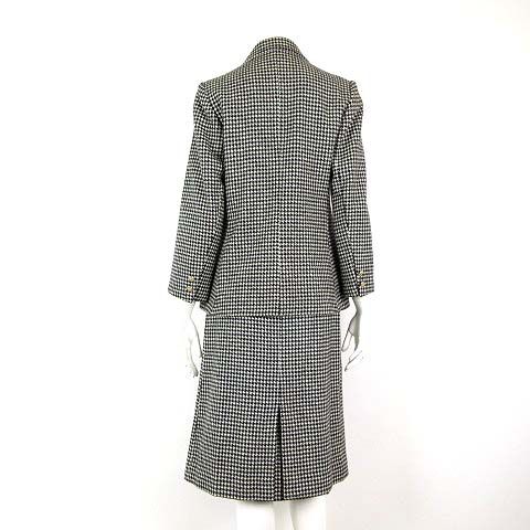 レリアン Leilian スカートスーツ 上下セットアップ 千鳥格子 カシミヤ ウール ブレザー ジャケット スカート ミディ丈 M 9 オフ白 黒 ブラック