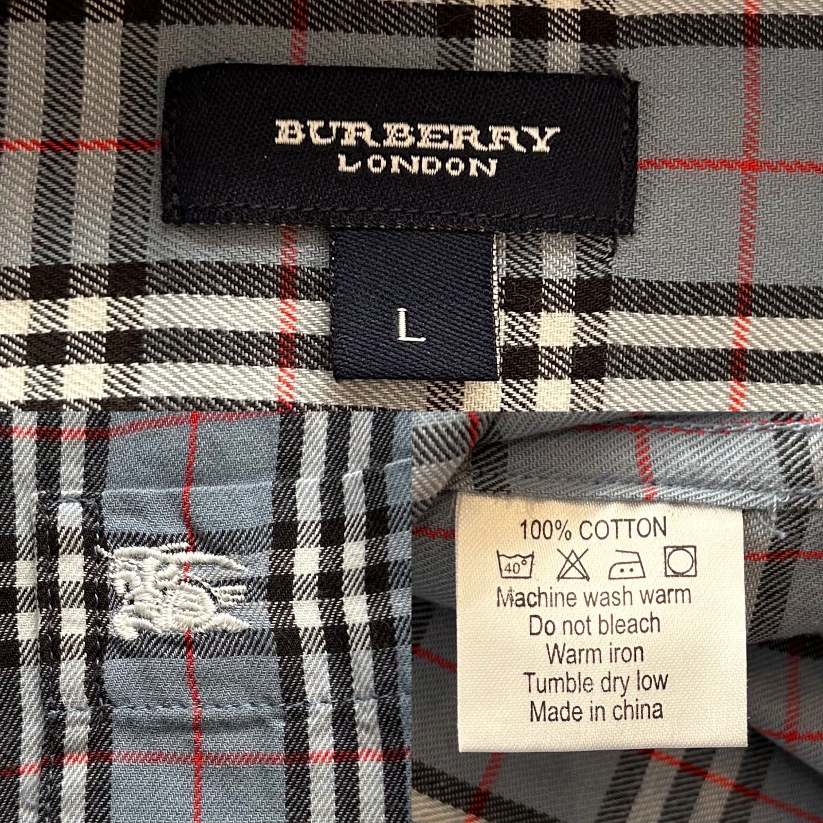 ♥品製品タグ付きバーバリーノバチェック半袖シャツコットン
