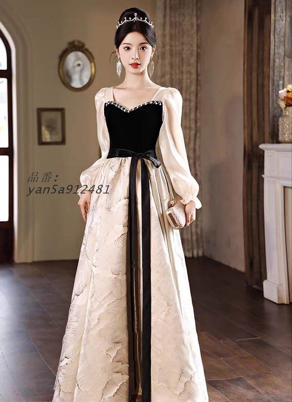 ドレス 大人 ピアノ 発表会 ロングドレス 大きいサイズ 長袖 演奏会 結婚式 袖付き yan 5 a 912481