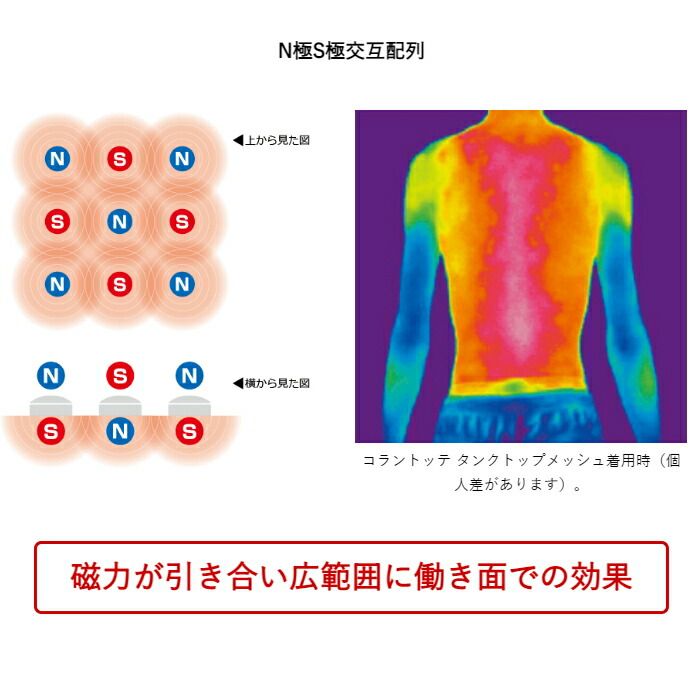 LUCEシリーズ最高磁束密度(100mT)の磁石粒100個~120個(サイズにより異なる)をコラントッテ独自のN極S極交互配列で配置。