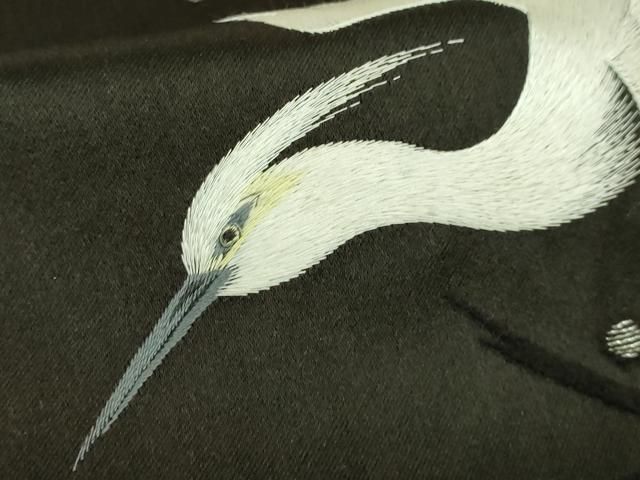 平和屋着物 上 アンティーク 大正ロマン 太鼓柄 京袋帯 手刺繍 白鷺 ベロア 憲法黒茶色地 kh 5