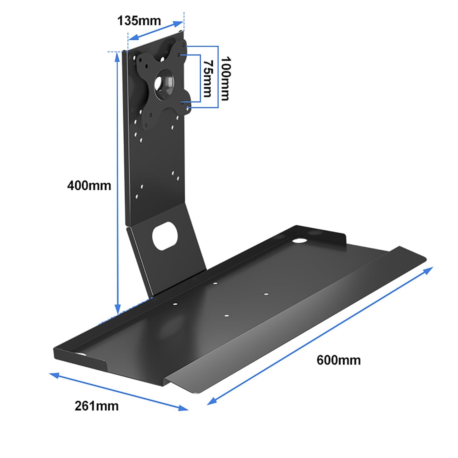 VESAキーボードトレイ,冷間圧延スチールコンピューターキーボードとマウスのプラットフォームトレイ,フェンシング設計プログラムデスクキーボードトレイ,VESAマウントアタッチメント耐荷重10kg (C)