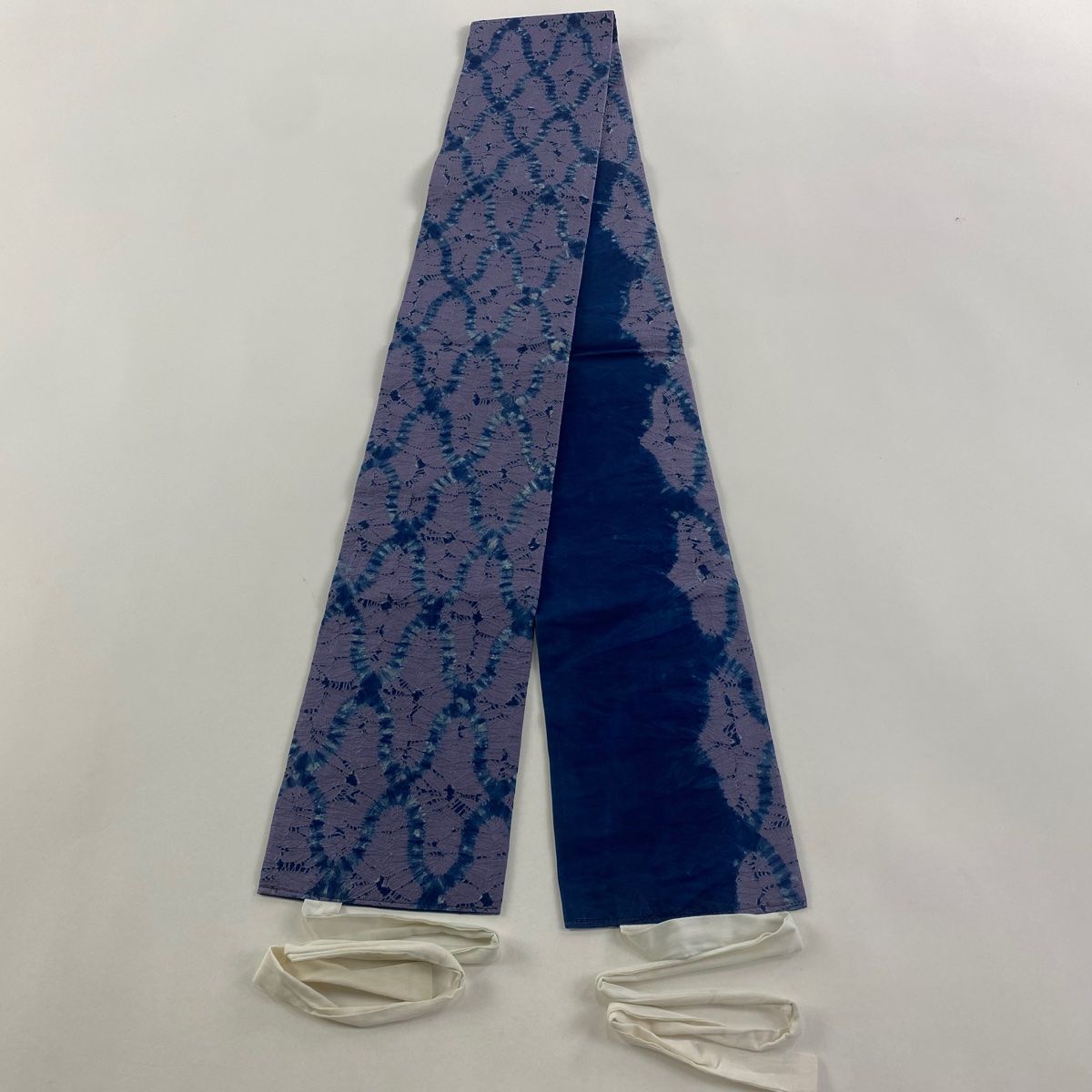 付け帯 秀品 作り帯 網目 幾何学模様 絞り 藍色 正絹