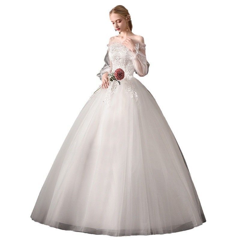 一字肩 軽やかウェディングドレス メインドレス フレンチシック ロング丈 夏用 トラベルフォト対応-9.19