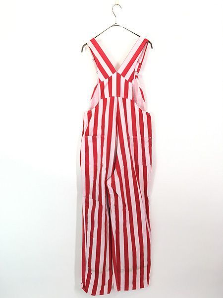 古着 90 s GAME BIBS 太ピッチ ストライプ 総柄 デザイン オーバーオール 赤×白