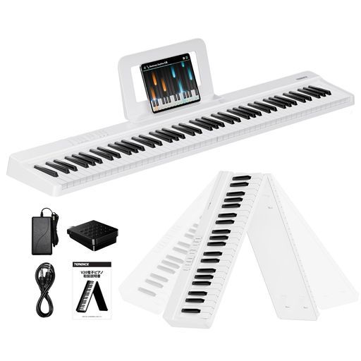 【折りたたみ式&充電式&携帯便利】V20電子ピアノは、従来の電子ピアノの常識を覆し、コンパクト設計です。展開時は本格派で、折り畳めば幅は半分を削減して省スペースと携帯性が両立実現できます。大容量バッテリー搭載で公園・キャンプ・旅行先など電源が確保できない場所でも自由に演奏可能です。突然の音楽のインスピレーションを逃しません。