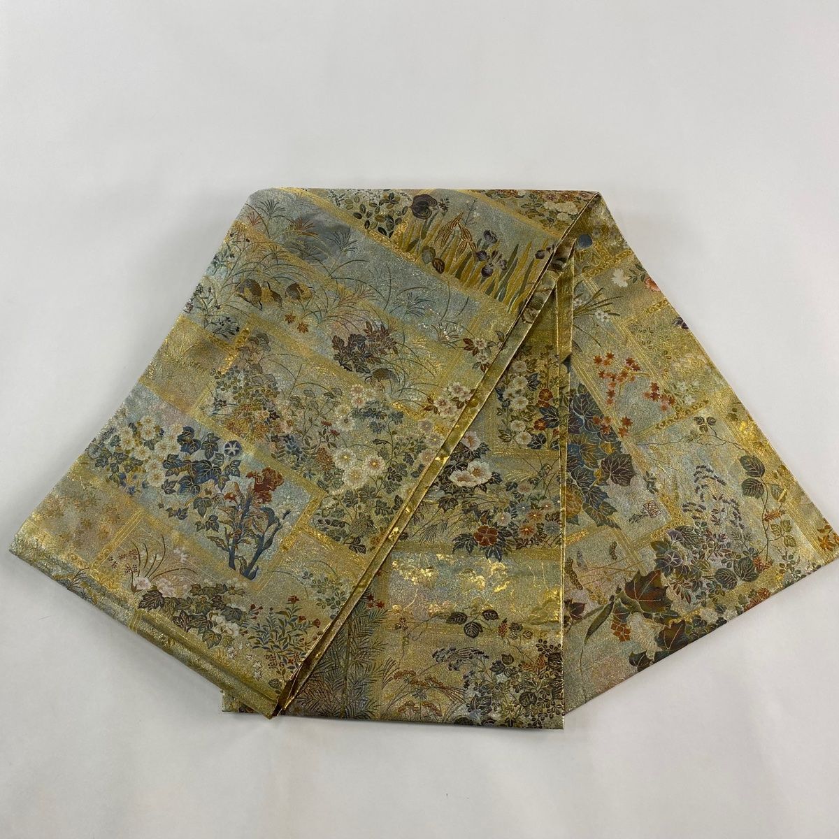丸帯 落款 琳派大全集 違い棚 草花 箔 金色 お太鼓柄 正絹