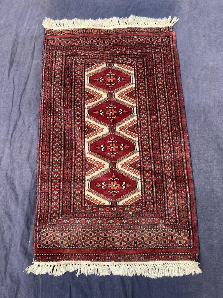 ヴィンテージ ラグ カーペット キリム 100 x 62 cm 絨毯 赤系 レッド ペルシャ絨毯 手織り 細長い 長方形 ウール 羊 ビンテージラグ 幾何学 ビンテージ ワンルーム バルーチ トルクメン トライバル