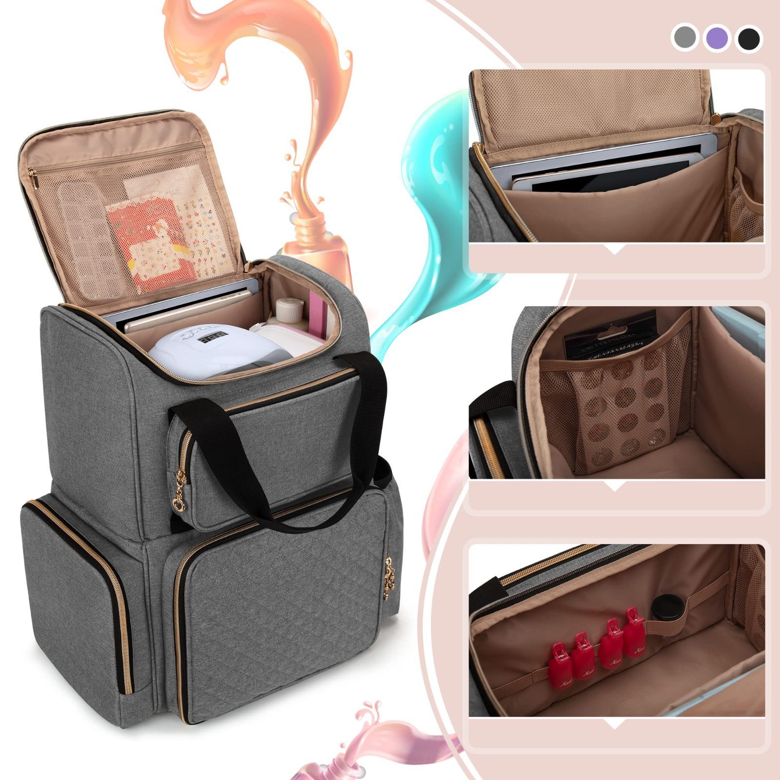 Luxja マニキュア収納 リュック 70ボトル用 仕切り 2つの取り外し可能なポーチ付き ネイルライト 収納 マニキュアケース 3WAY 持ち運び