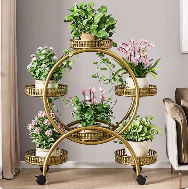 【省スペース・多くの鉢が置けます】大型の多段式の植物棚で、6鉢の鉢植えも置けます。玄関やコーナーなどの比較的限られたスペースでも多くの花や植物を同時に育てることが可能です。空間を有効活用でき、園芸好きの方におすすめです