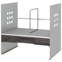 高級感のある丈夫なスチール製ブックスタンド。A4までの書類や小物の収納に便利な引き出しケース付き。ケース下の空間にはラップトップやタブレット端末の収納が可能です。●本立●種別:H型ケース付325●間口:32.6cm●本体仕切棒(スライド式):1本●ケース有効内寸:幅314×奥217×高36mm●棚下有効内寸:幅303×奥240×高80mm●材質:本体・パイプ=スチール、ケース=ポリスチレン●質量:3.5kg●色:シルバー●ゴム足付き