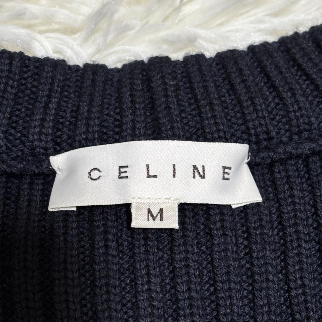 CELINE 長袖 マキシ丈ウールニットワンピース M ネイビー