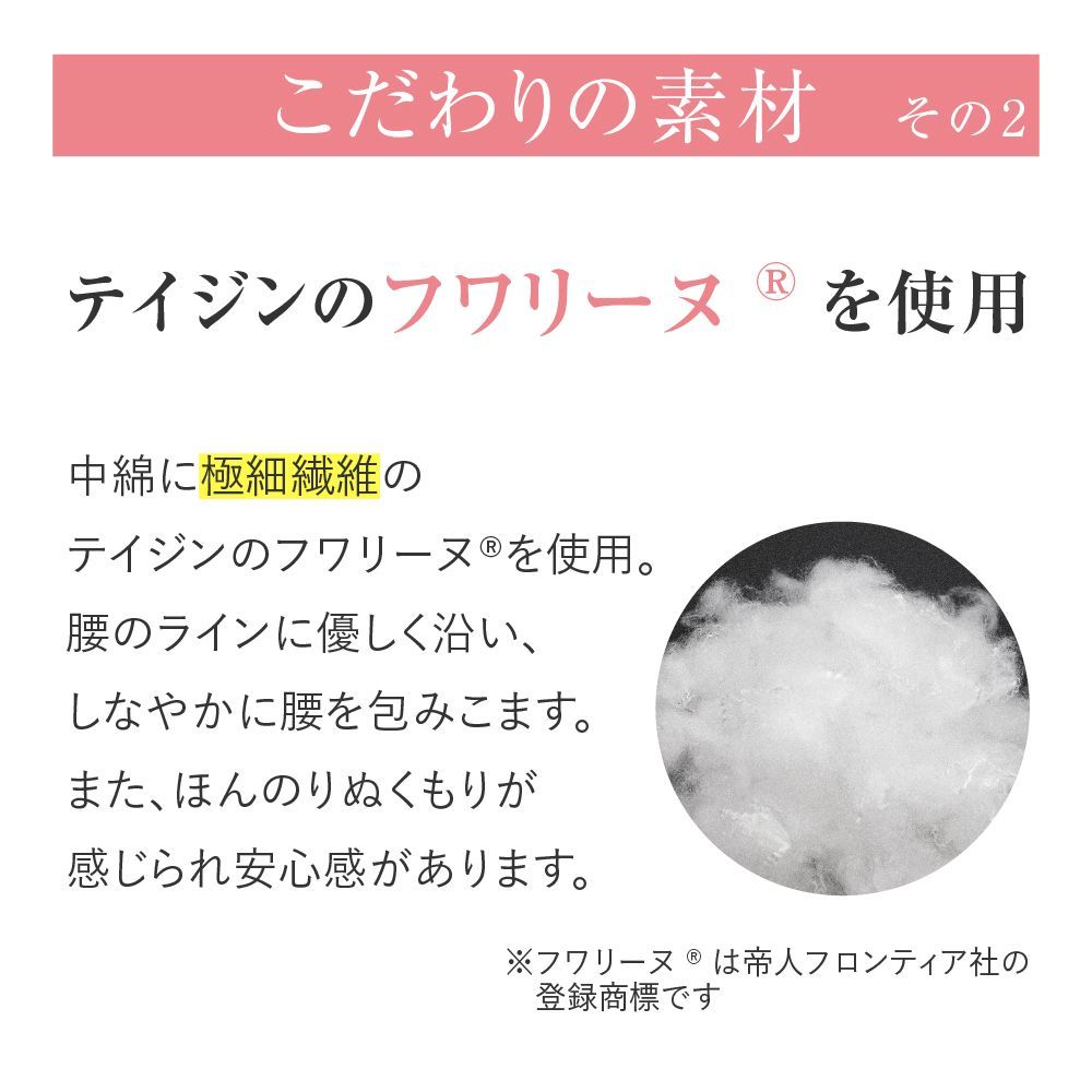 1.中綿にテイジンのフワリーヌを採用。