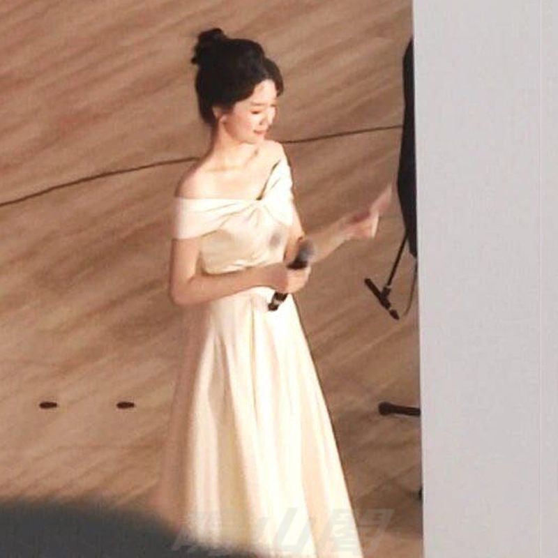 フレンチ風の上品なオフショルダーロングドレスです。光沢のあるサテン素材が華やかさを引き立て、シンプルながらも気品のある一着。中腰のAラインシルエットでスタイルアップ効果も◎。背中は編み上げ仕様でフィット感も調整可能です。