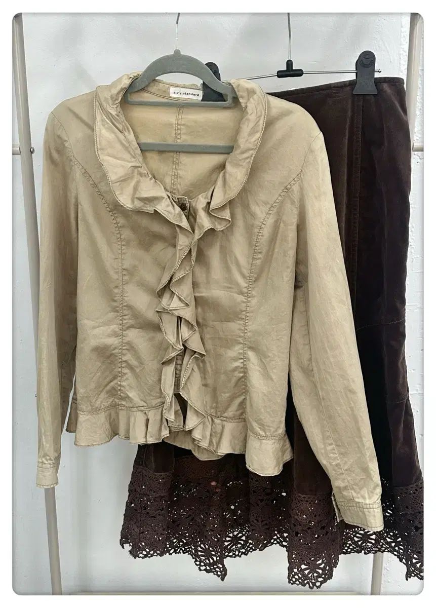 日本ヴィンテージ ラテギャル グランジ ブラウン ベージュ 秋 レーススカート コーデセット