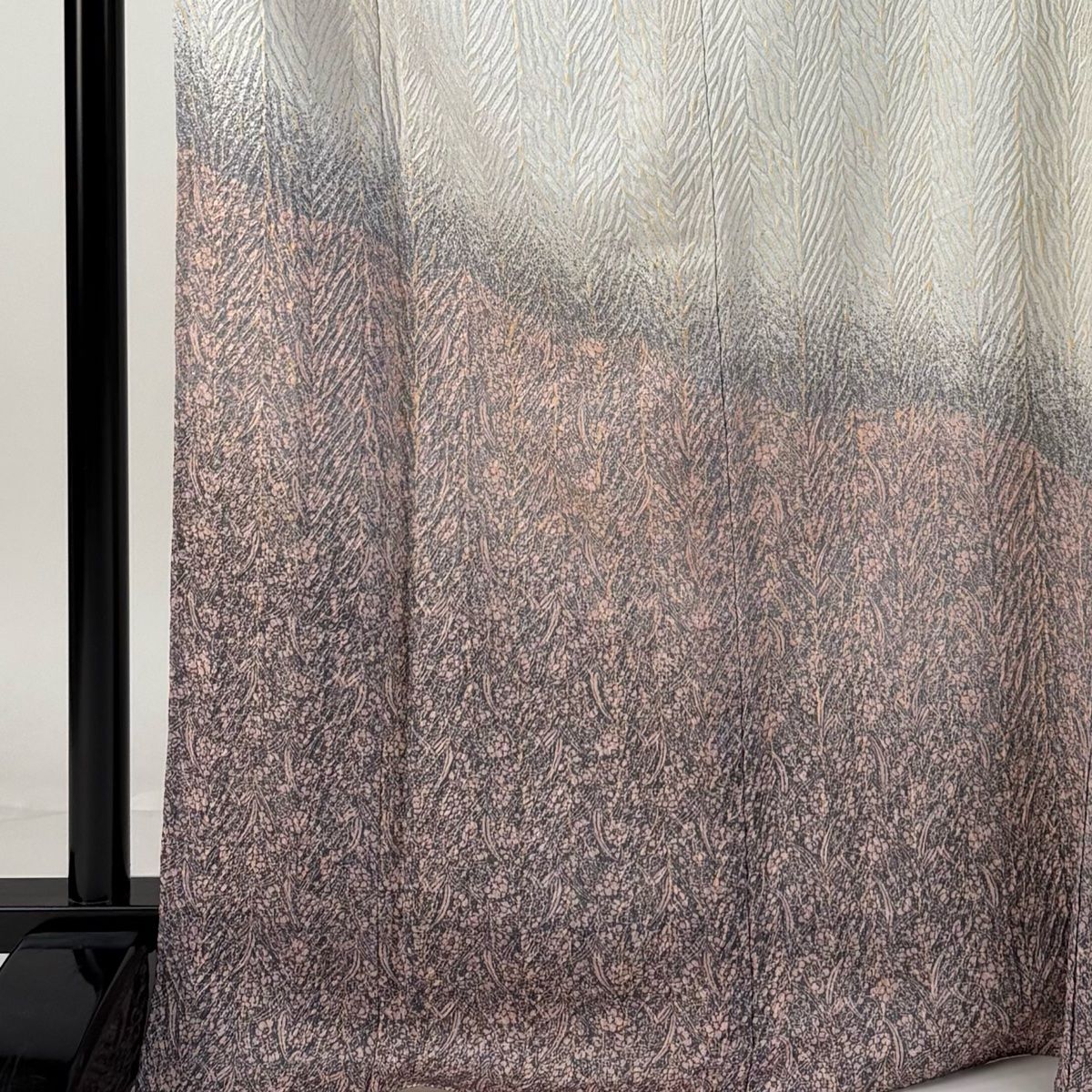 付下げ 身丈169 cm 裄丈66 M 単衣 幾何学 草花 絞り ぼかし 灰白 正絹