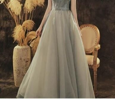 エレガントチュ-ルパーティドレス。胸元はチュールのタックをウエストで重ね、胸元からウエストにかけて長方形と丸形の小さなガラス用のビーズをあしらったデザインが豪華でセレブリティ-な雰囲気を醸し出しています。モスグリ-ンのサテン地の上に同色のチュールをウエストから裾にかけて重ねボリューム感のある華やかな印象になっています。背中はヒップ下まで編み紐掛けになっているので、紐の締め具合でサイズ調整が可能となり、サイズ的に余裕をもって着用頂けます。肩紐は前と後ろに分かれていて、好きな長さで結ぶ形になっているので着用される方によって長さを変えられます。結婚式の二次会に、またパーティやコンサートにと、晴れやかなシーンにふさわしい一着です。ファスナーなし。背中編み紐掛け。胸パット付き。