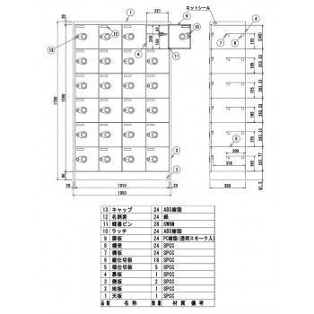 シューズロッカー 4列6段中棚付扉 スモーク 付 錠なしタイプ ニューグレー COM-SC-24 WPC